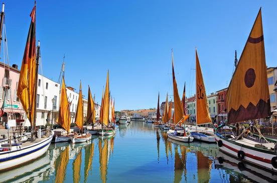 Die Anlage des Hafenkanals, der ca. 1 km in die Stadt hineinreicht, geht auf das 14.Jh. zurück und bezeugt die lange Tradition Cesenaticos als Fischerort. Seine heutige Gestalt erhielt er von Leonardo da Vinci um 1500.Über 100 pescherecci, die Schiffe der Fischereiflotte, laufen hier jeden Tag aus und ein. Rechts und links des Kanals beleben Bars und Restaurants die alten Fischer- und Händlerhäuser, tags über wie abends eine beliebte Flaniermeile. Schließlich der Höhepunkt, das Museo Galleggiante della Marineria: Im letzten Kanalteil mitten in der Stadt erheben sich die bunten Segel der historischen Schiffe, ein schwimmendes Museum und einzigartiges Schauspiel. Bragozze heißen sie oder traboccoli und man kann sich kaum vorstellen, dass manche Fischer noch bis in die Fünfzigerjahre mit ihnen ausfuhren. Zur Historie des Hafens gehören auch die conserve, große, kegelförmige, halb eingegrabene Eiskeller, in denen unter Schnee der Fisch konserviert wurde. Ihre Reste siehst du an der nahen Piazza delle Conserve.