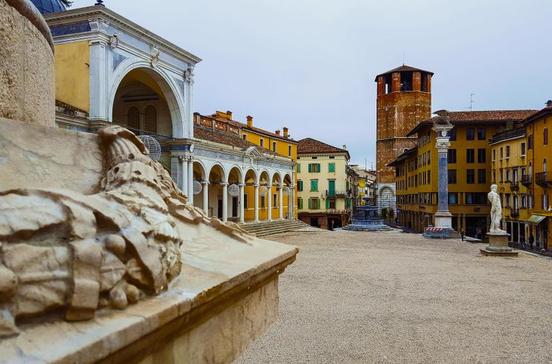 Dank seines harmonischen Gefüges aus unterschiedlichen Elementen – Palazzi, Stufen, Statuen, die Loggia del Lionello und im Hintergrund das Kastell – wird der „Freiheitsplatz“ als schönster venezianischer Platz auf dem Festland gerühmt. Diesen einladenden Mittelpunkt der Stadt akzentuieren die hochelegante, rosa-weiß gestreifte Loggia del Lionello, das einstige Rathaus in typisch venezianischer Gotik, und der vom Uhrturm beherrschte Porticato San Giovanni, der den Platz mit seinem langen Renaissanceportikus auf schlanken, feinen Säulen säumt. Hinter der Loggia del Lionello beginnen die lebhaften Straßen Via Rialto und Via Mercato Vecchio, die an stattlichen Palazzi vorbei durch die Altstadt führen und zum Bummeln einladen.
