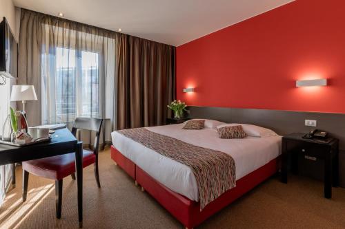 Jedes Zimmer im Milano Hotel ist mit einer Minibar und einem TV ausgestattet.