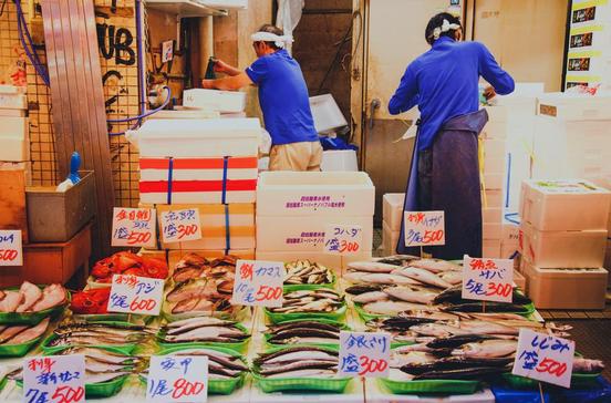 Das frühe Aufstehen lohnt sich: Dieser Fischmarkt, der größte der Welt, bietet ein grandioses Spektakel. Hier beginnt der Tag um 2 Uhr nachts. Lastwagen karren Zappelndes und Tiefgefrorenes aus allen Häfen des Landes herbei. Um 5 Uhr beginnt die Fischauktion. In atemberaubender Geschwindigkeit, mit geheimnisvollen Handzeichen und in einem Kauderwelsch, das nur Eingeweihte verstehen, wird der Fang an verschiedenen Stellen gleichzeitig an die Großhändler versteigert. Von zierlichen Krebsen bis zu gigantischen Thunfischen - in gut einer Stunde wechseln rund 3000 t von mehr als hundert Sorten Meeresgetier den Besitzer. Gegen 7 Uhr erscheinen die Einzelhändler, um ihre Auswahl für den Tag zu treffen. Zu 90% deckt das fangfrische Angebot des Marktes den täglichen Fischbedarf der Hauptstadtbewohner. Genug zu bestaunen gibt es auch noch den Rest des Vormittags - an den Fischständen des Inner Markets, der ab 9 Uhr für Touristen freigegeben ist, und später dann in den vielen kleinen Läden des Outer Markets mit ihrem teils recht exotischen Angebot. Besonders beliebt sind auch die kleinen Sushi-Läden mit ihren schmalen Theken direkt auf dem Gelände des Fischmarkts, in denen man das frischeste und zarteste Sushi genießen kann - ein kulinarischer Hochgenuss in sehr authentischem Ambiente. Ein Wort zur Vorsicht: Händler und Arbeiter verstehen ihr Geschäft nicht als Touristenattraktion. Sie nehmen keinerlei Rücksicht, es kann zu Rempeleien kommen. Wenn man die Thunfischauktion sehen will, muss man sich ab 5 Uhr beim Fish Information Center registrieren. In zwei Schichten dürfen dann insgesamt 120 Besucher für eine knappe halbe Stunde der Auktion beiwohnen. Aber auch ohne Auktion ist der Tokioter Fischmarkt ein Erlebnis.