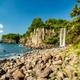 Mit 23 m ist der Wasserfall ohnehin schon hoch, aber was ihn so besonders macht, ist, dass er sich über die grauen Felsen direkt ins Meer stürzt. Auf dem Weg dorthin genießt du zudem den tollen Ausblick über die raue, pinienbewachsene Küste.