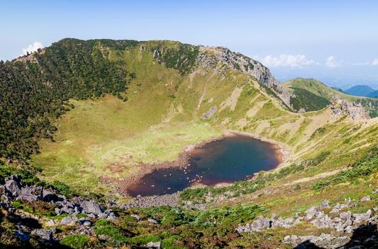 1950 m ist der Vulkan Hallasan hoch, womit das Unesco-Weltnaturerbe der höchste Berg Koreas ist. Acht nicht besonders schwere, aber schweißtreibende Wanderrouten gibt es rund um den Berg. Zwei davon führen auf den Gipfel und zum Kratersee. Für alle, die nur wenig Zeit mitbringen, bietet sich der Eoseungsaengak Trail an, der am Hallasan National Park Visitor Center in Eorimok beginnt und auf den Eoseungtaeng Oreum führt. Er ist mit anderthalb Kilometern sehr kurz und lässt sich in rund 90 Min. Auf- und Abstieg sehr gut bewältigen.