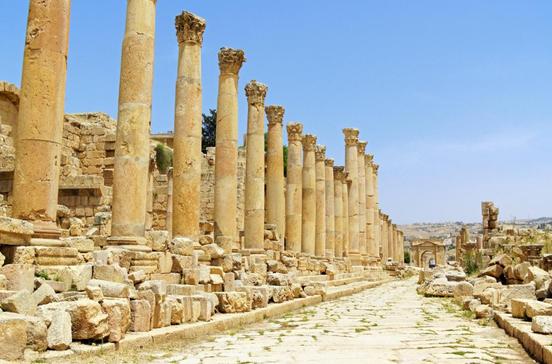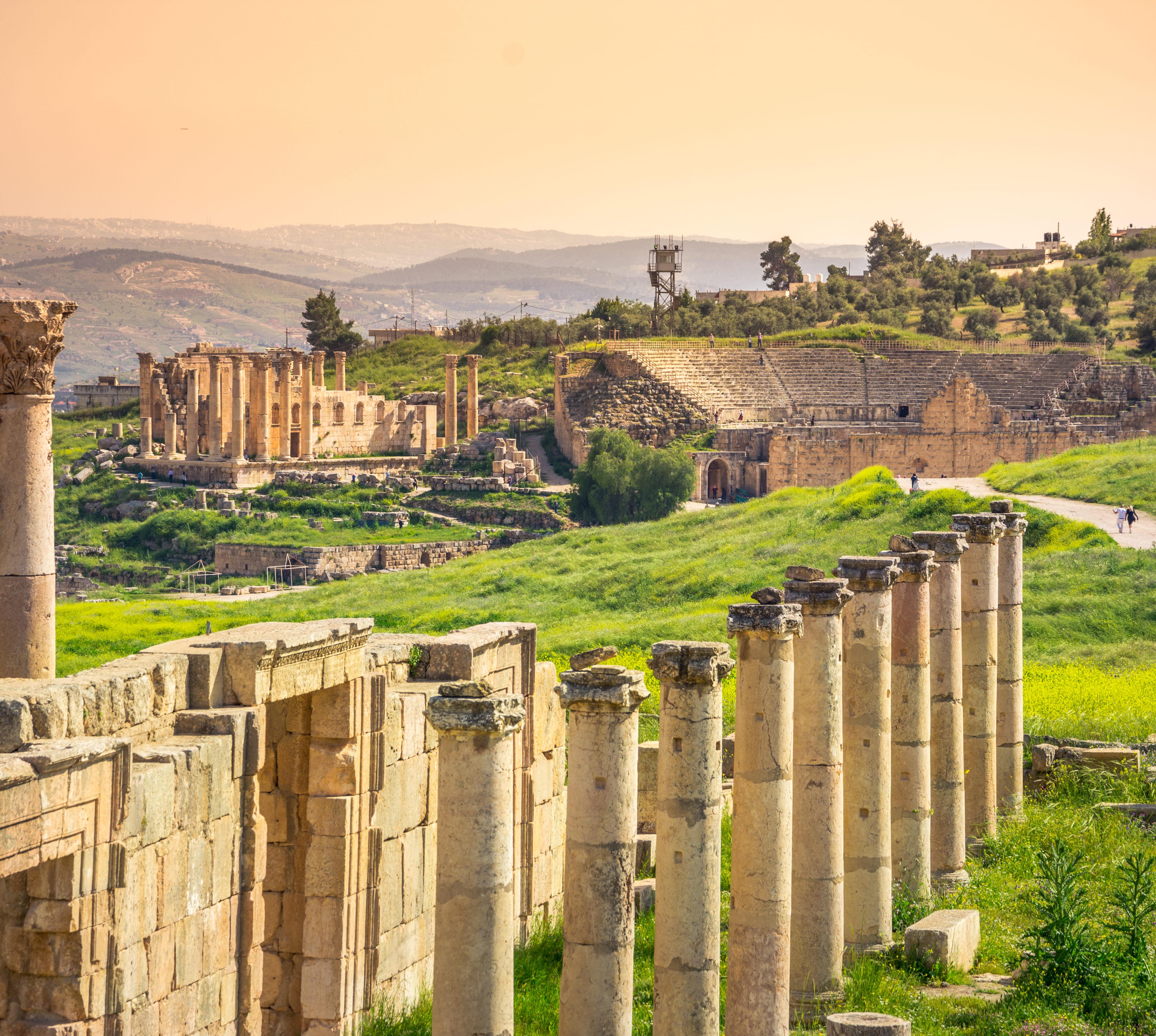 Jerash, das antike Gerasa, gilt als die weltweit besterhaltene römische Siedlung. Nach Petra ist sie die zweitwichtigste Touristenattraktion in Jordanien. Die Ruinen liegen etwa 50 km nördlich von Amman und können gut bei einem Tagesausflug besucht werden. Die aus rosa-orangefarbenem Kalkstein erbaute Stadt lag an einer der wichtigsten Handelsrouten der Antike. Umstritten ist, ob Gerasa von Alexander dem Großen oder einem seiner Feldherren gegründet wurde. Ihre Blütezeit erlebte die hellenistische Stadt jedoch unter römischer Herrschaft im 2.und 3.Jh. Der Besuch von Kaiser Hadrian 129 n. Chr. führte zu einem großen Bauboom und die Stadt wurde zum Wirtschaftszentrum der Provincia Arabica. Zu ihren Glanzzeiten lebten 20.000 Menschen in Gerasa. Unter byzantinischer Herrschaft begann der Verfall und im 9.Jh. wurde die Stadt endgültig verlassen. Doch in jedem Sommer wird sie zu neuem Leben erweckt: In den beiden Theatern werden Opern gespielt und Konzerte gegeben.