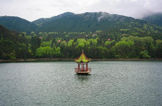 Architektonische HighlightsKleine Tempelanlage am Ganzi-See. Die Anlage ist über eine Seebrücke erreichbar.