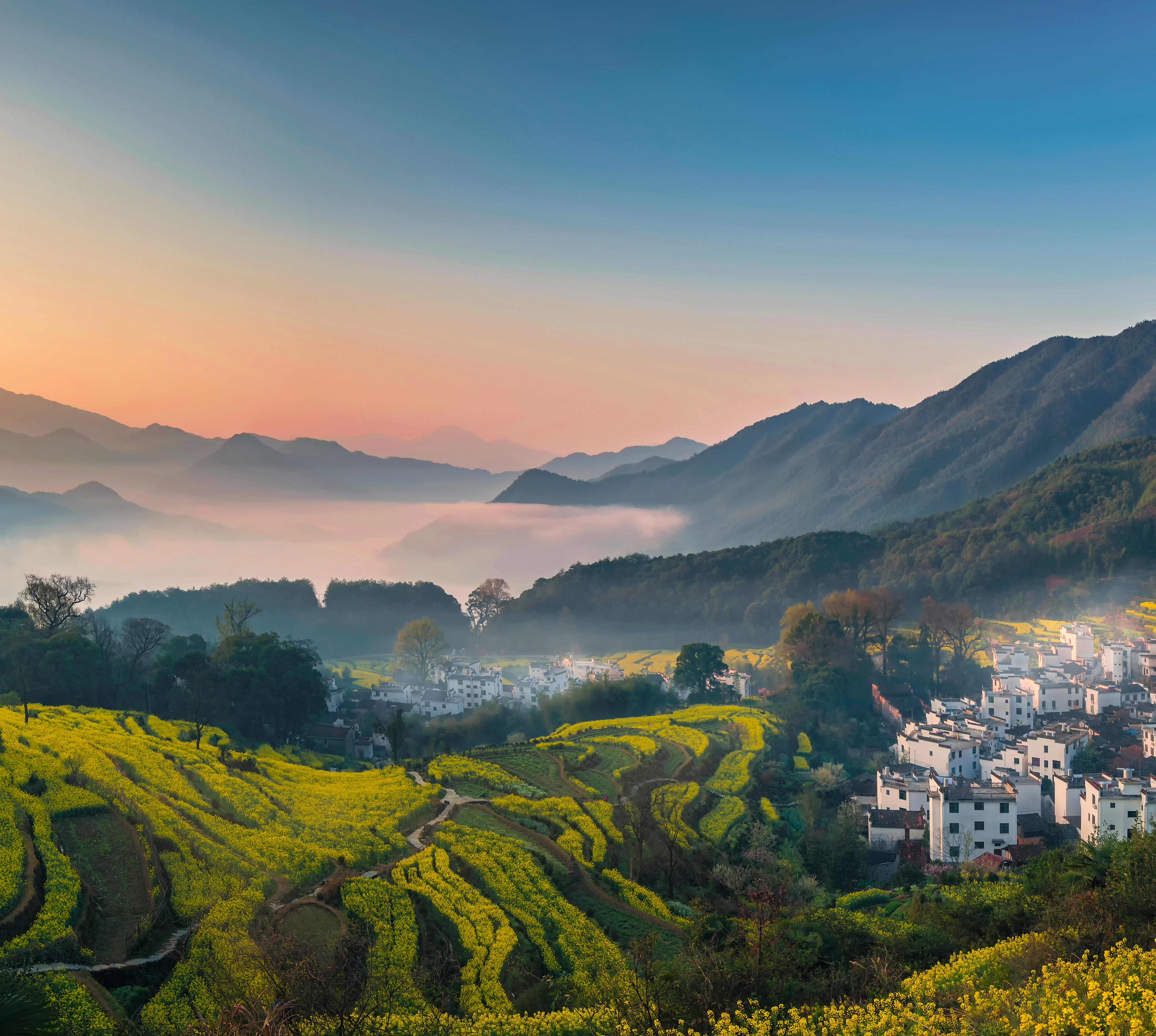 Das Abendrot genießt du am besten an den Pavillons Wangjiang Ting und Tianchi Ting nördlich der Siedlung Guling.
