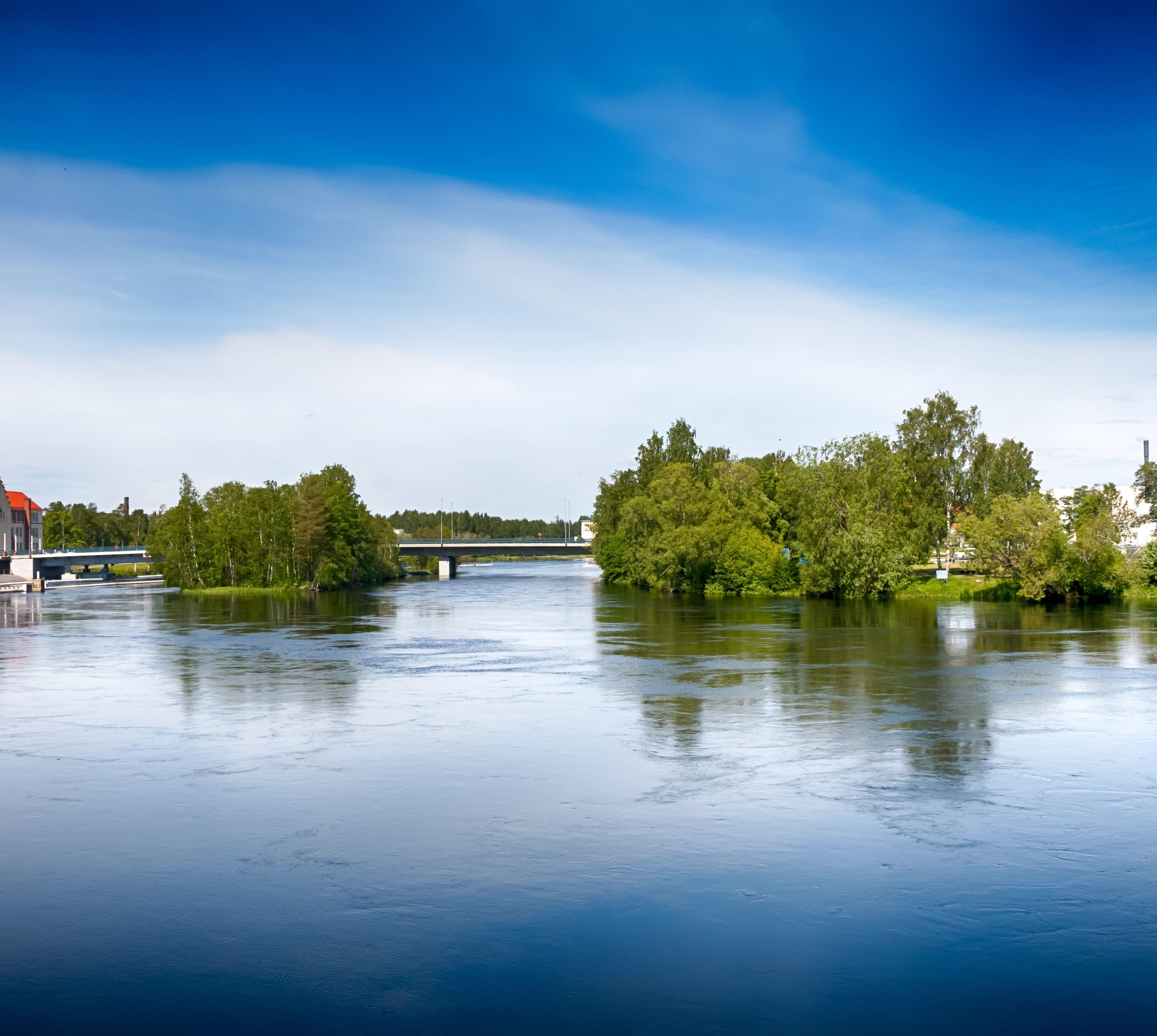 Das Sommercafé Jokiasema liegt an einer Flussmündung mit schönem Blick auf einen See.