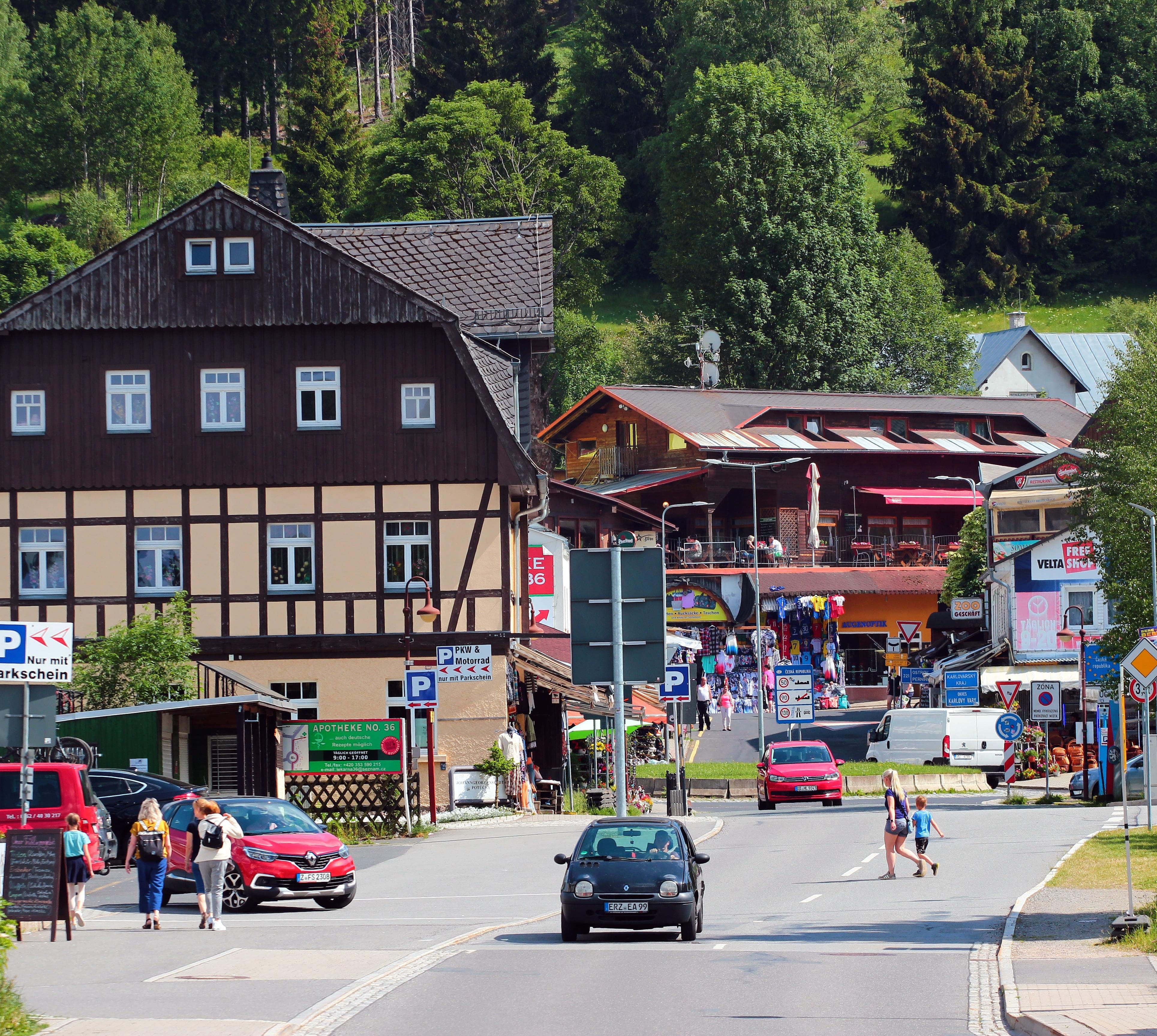 Diesen Ruf wiederzuerlangen, bemüht sich die Stadt seit der Einheit Deutschlands mit Erfolg. 1929 entstand hier für die Skispringer die erste deutsche Großschanze, die 1962 durch die Erzgebirgsschanze ersetzt wurde. Zur Tschechischen Republik besteht ein Grenzübergang für Fußgänger und Radfahrer sowie einer für die Eisenbahn.