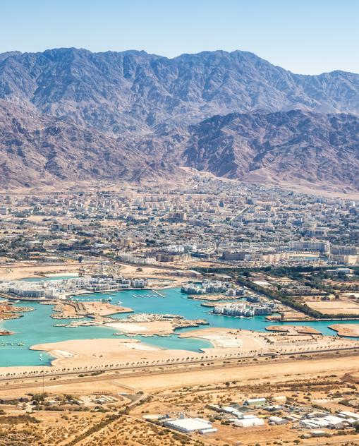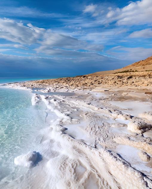 Jordanien ist unglaublich vielfältig. Nur wenige Kilometer vom Wadi Rum entfernt warten die Hafenstadt Aqaba – Jordaniens Tor zur Welt – und das Rote Meer, das mit seinen Korallenriffen und Fischgründen ein wahres Paradies für Taucher ist. Das Jordantal, in dessen subtropischem Klima Gemüse angebaut wird, bietet dagegen viel Grün. An seinem südlichen Ende mündet der Jordan – oder was davon noch übrig ist – in das Tote Meer, das mit rund 430 m unter dem Meeresspiegel den tiefsten Punkt der Erde markiert. Mit seinem hohen Salz- und Mineraliengehalt zieht es von jeher auch viele an, die etwas für ihre Gesundheit tun wollen. Im Norden erstreckt sich eine mediterrane Hügellandschaft mit Olivenhainen und saftigen Wiesen, auf denen bereits Ende Februar Myriaden duftender Blumen für Frühlingsgefühle sorgen.