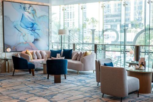 Die modernen Zimmer und Suiten verfügen über einen 42-Zoll-Flachbild-TV und raumhohe Fenster. Das Marmorbad ist mit einer Badewanne, einer Regendusche und Pflegeprodukten von Byredo ausgestattet. Einige der Zimmer bieten Ihnen einen Balkon und Zugang zur Club Lounge.