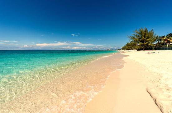 Der feinsandige, von australischen Pinien gesäumte Seven Mile Beach ist der Vorzeigestrand von Grand Cayman. Hier stehen die meisten Hotels, es gibt Bars, Restaurants und unzählige Wassersportangebote.