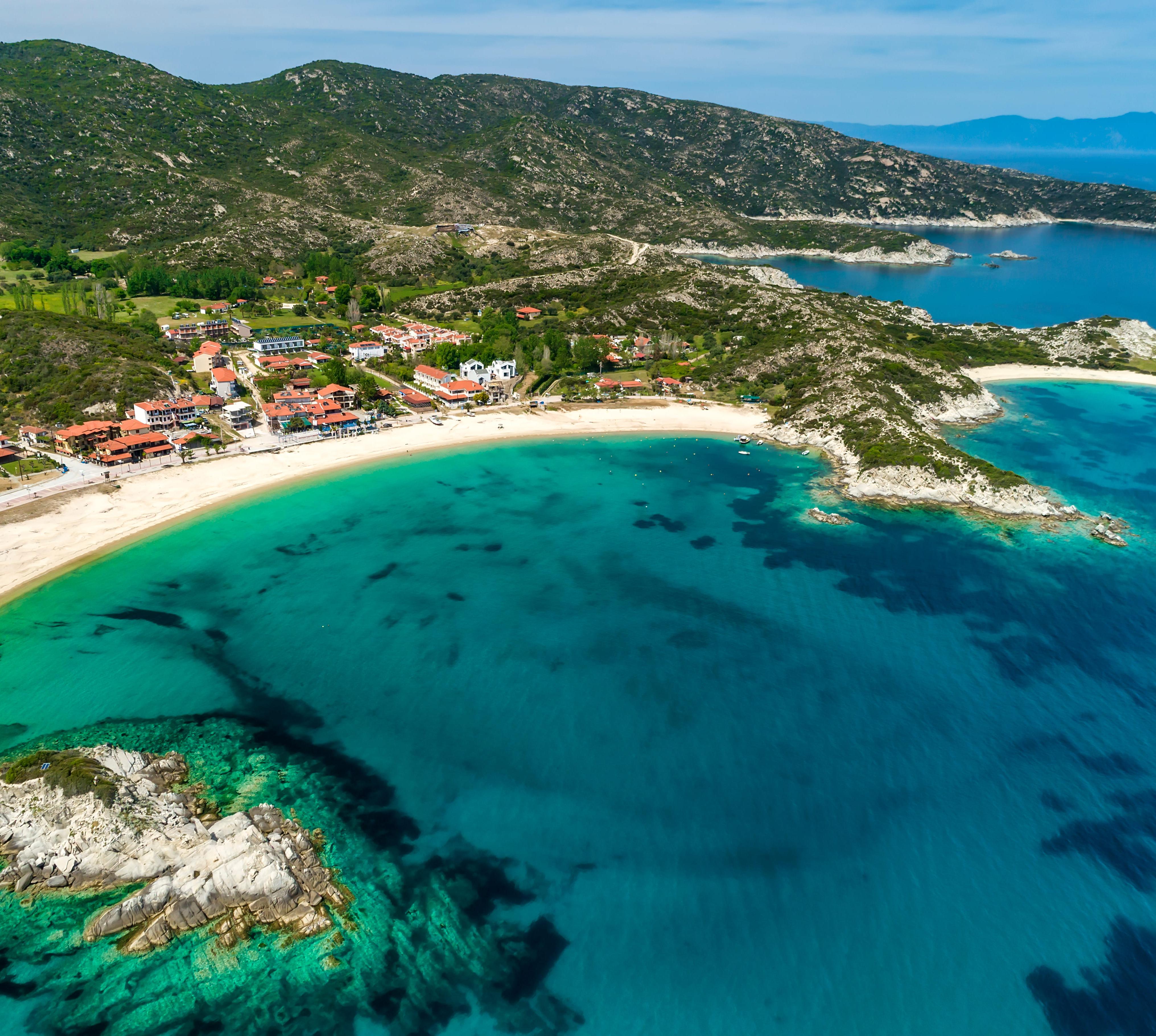 Der einzige Badeort (110 Ew.), der unmittelbar an der Westküste und damit am offenen Meer liegt, drängt sich in einen schmalen Taleinschnitt, der nur Platz für eine (autofreie) Gasse bietet. Direkt vor dem Ort misst der Strand lediglich rund 50 m; ein langer Sandstrand schließt sich nördlich an. Er ist vor allem bei Urlaubern mit Wohnmobil beliebt.