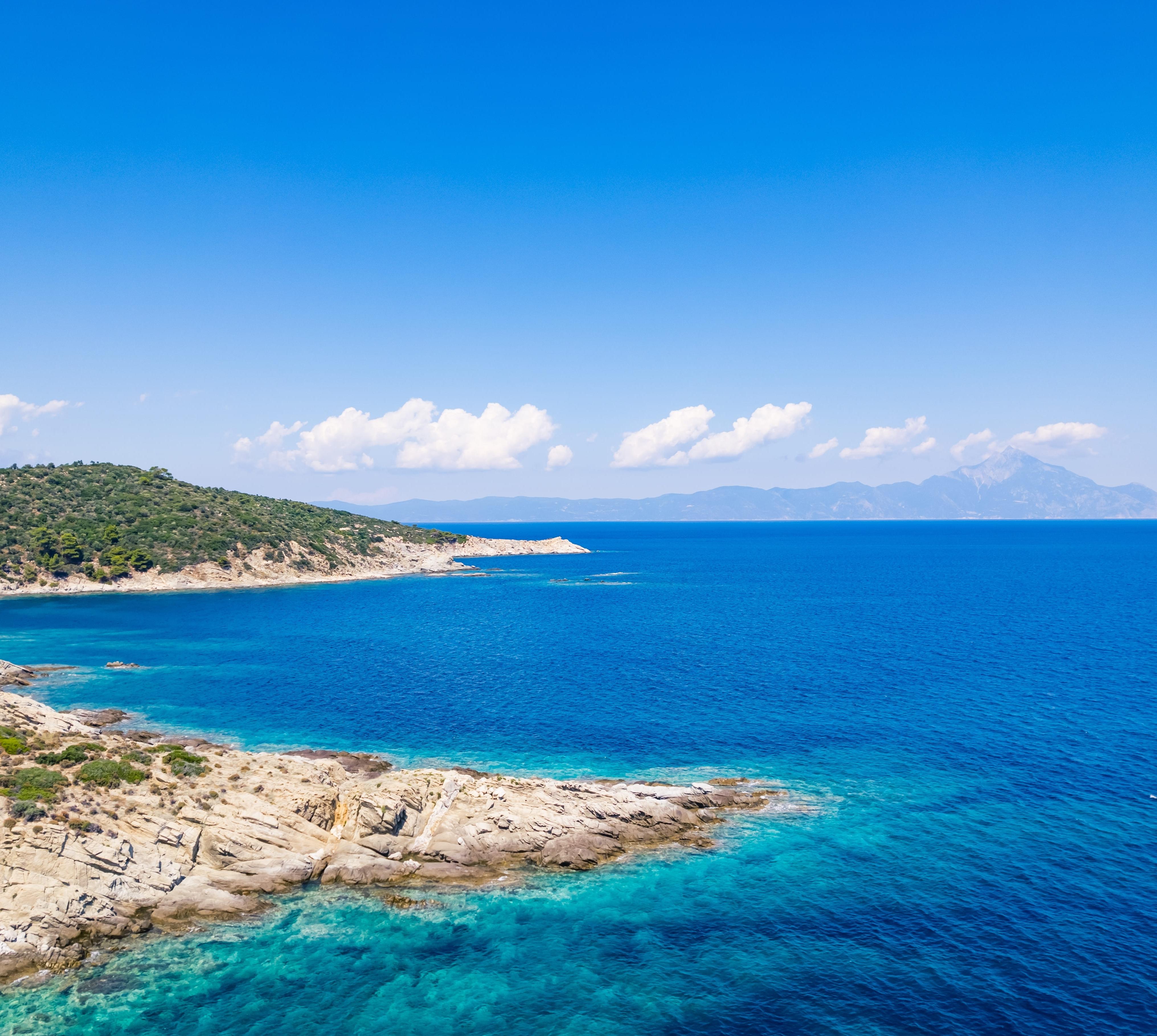 Eingebettet in grüne Hügel liegt das 100 m lange Kieselsteinband der Kervéli-Bucht direkt der Türkei gegenüber. Große Tamarisken spenden der Hälfte des Strandes angenehmen Schatten. An dem Hang dahinter liegt ganz ruhig inmitten von Olivenbäumen und Zypressen das auch architektonisch ansprechende Hotel Kervéli Village mit Pool und Tennisplatz.