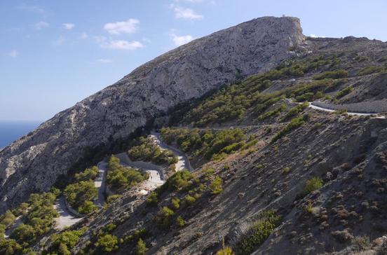 Auf den mit rund 560 m höchsten Berg der Insel Santorin führt eine Asphaltstraße. Oben steht ein großes Kloster gleichen Namens mit einer Kirche aus dem Jahr 1711 und Gebäuden aus dem 19.Jh. Vom Profítis Ilías bringen schmale Pfade Wanderer in gut 90 Min. nach Alt-Thera und weiter nach Kamári oder Périssa.