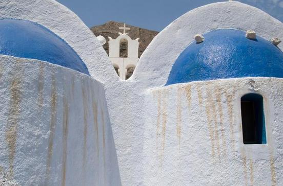 Thíra, auch als Santorin bekannt, ist einzigartig. Das Eiland ist das Ergebnis des wahrscheinlich größten Vulkanausbruchs der Menschheitsgeschichte. Um 1450 v.Chr. explodierte die Insel, in deren Mitte bis dahin ein Vulkan 1800 m hoch in den Himmel ragte. Nach den Eruptionen waren der Berg und die Hälfte der Insel verschwunden. Es standen nur noch drei Teile des äußeren Inselrands, die heutigen Inseln Santorin, Thirassía und das winzige Asprónissi. In der Inselmitte hatte sich ein riesiger Krater mit bis zu 360 m hohen Wänden gebildet, in den das Meer strömte. Auf diesen steil abfallenden Kraterrändern stehen heute Dörfer. Von dort aus senkt sich die Insel mehr oder minder flach abfallend noch immer wie in der Zeit vor dem Vulkanausbruch zu den äußeren Küsten hin ab. Die verbliebenen Teile von Thíra wurden von einer 60 m dicken Asche- und Bimssteinschicht bedeckt. Sie ist die Voraussetzung für das Gedeihen des einzigartigen Weins der Insel und ermöglicht den Tomatenanbau. Der Abbau des Bimssteins, der beispielsweise als Isoliermaterial beim Bau des Suezkanals verwendet wurde, brachte einigen Insulanern Wohlstand. Völlig zur Ruhe gekommen ist der Vulkan immer noch nicht. In der Mitte des Kraters liegen zwei kleine, dunkle Lavainseln, die sich bei verschiedenen Eruptionen gebildet haben. Die letzten fanden 1939-1941 und 1950 statt. Aus den Kratern dieser Lavainseln steigen Schwefeldämpfe auf, an einer Stelle bricht eine heiße Quelle hervor. Trotz allem ist Thíra eine heitere, ganz auf Urlaub eingestellte Insel. Vor dem kleinen Hafen des Hauptorts Firá machen Kreuzfahrtschiffe fest, deren Passagiere zu Fuß, auf Maultieren oder per Seilbahn ins Städtchen kommen und an den Kais des Haupthafens Athiníos löst im Sommer eine Fähre die nächste ab. Wahre Touristenströme erkunden v.a. Firá und Oía. Aber auch die Strände an der flachen Ostküste sind gut besucht. Viele Dörfer im Inselinnern laden zu Rundgängen ein und die Besichtigung der Ausgrabungen von Alt-Thera und Akrotíri ist Höhepunkt vieler Griechenlandreisen.