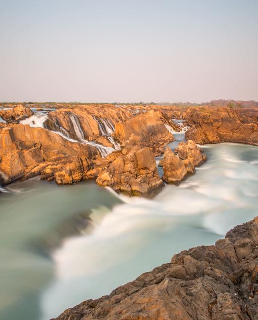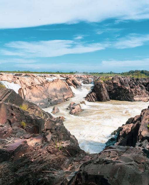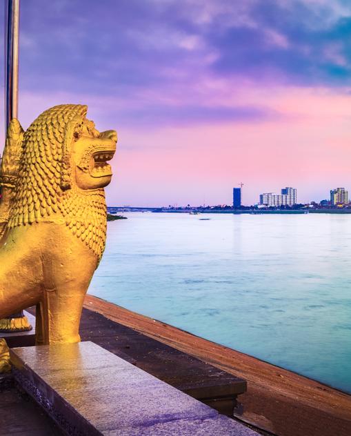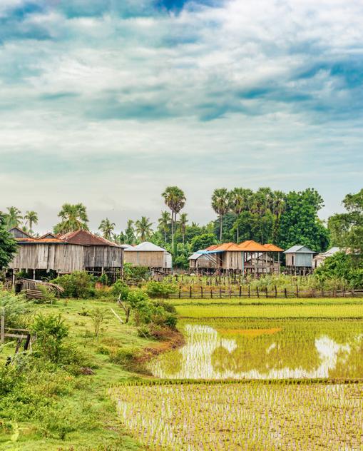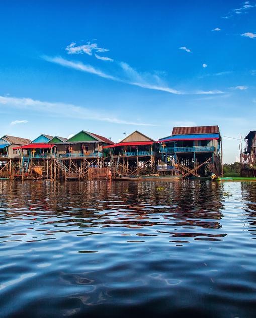 Kambodscha ist der Legende nach ein Land aus Wasser. Und tatsächlich: Der Mekong verwandelt sich stromaufwärts in ein Labyrinth aus Flussarmen, Inseln und Flutwäldern. Wer sich nach der Regenzeit mit einem Fischer ins Longtailboat auf den Flussriesen wagt, dem kann ein bisschen unheimlich werden, wenn das Ufer nicht mehr zu sehen ist zwischen all den gebeugten Bäumen, um deren Kronen jetzt Fische schwimmen. Die Marktstädtchen am Mekong beeindrucken mit ihrem zauberhaft provinziellen Charme und den seltenen Süßwasserdelphinen. Der Mekong-Zufluss Tonle Sap ist der einzige Fluss weltweit, der rückwärts fließt, so sagen die Kambodschaner. Nur so wächst der Tonle-Sap-See in der Landesmitte während der Monsunzeit zu einem der fischreichsten Binnenseen der Welt. In der überfluteten Landschaft leben die Kambodschaner in schwimmenden Dörfern auf ihren Hausbooten und Pfahlhäuschen zwischen Himmel und Wasser.