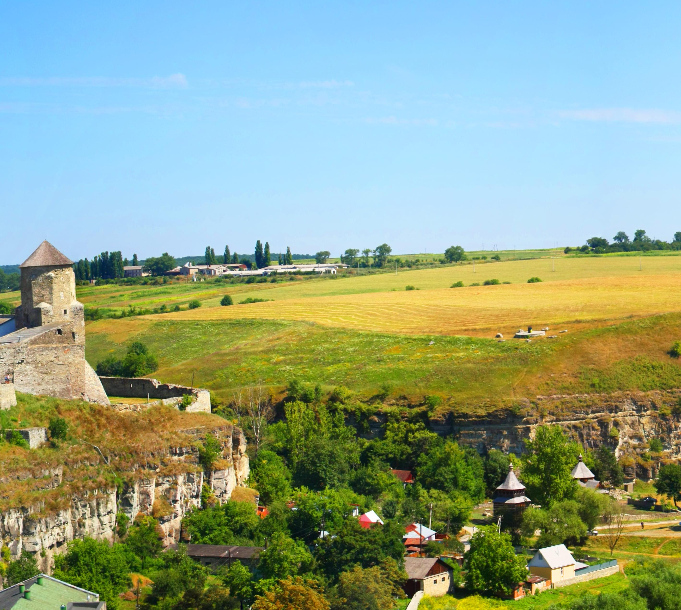 Rund um die Stadt (98000 Ew.) hat der Fluss Smotrytch vor 2 Mio. Jahren einen 40 m tiefen Canyon in den Kalkfelsen gefressen.
