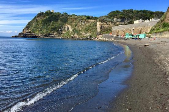 Im Nordwesten der Insel liegt geschützt in einer weiten Bucht dieser wohl schönste Strand Procidas mit viel grüner Natur und dunklem Sandstrand.