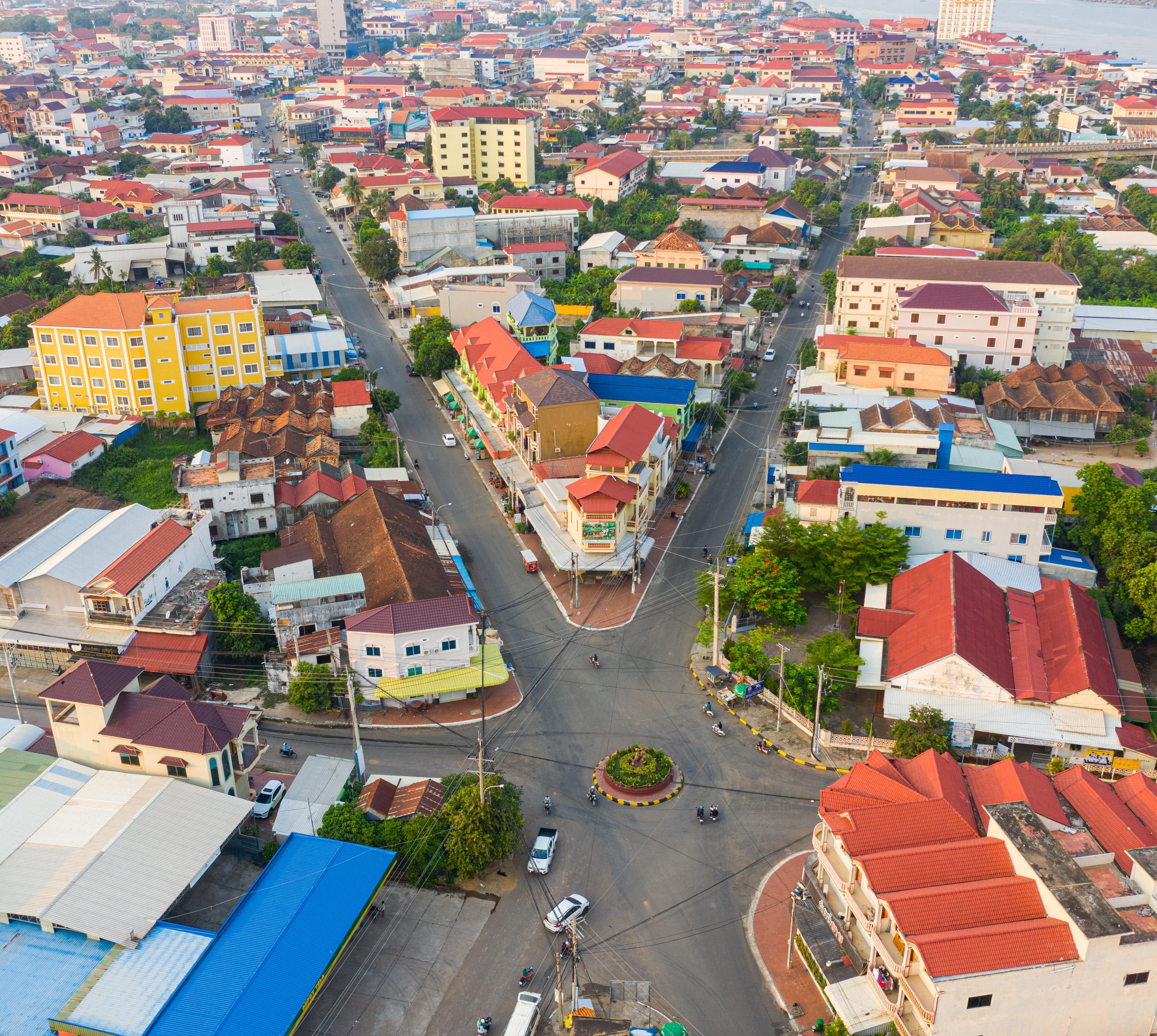 Unweit des Ufers vom Mekong gelegen. Schöne Aussicht auf den Mekong und Kizuna Bridge.