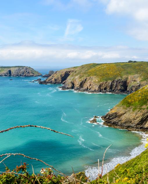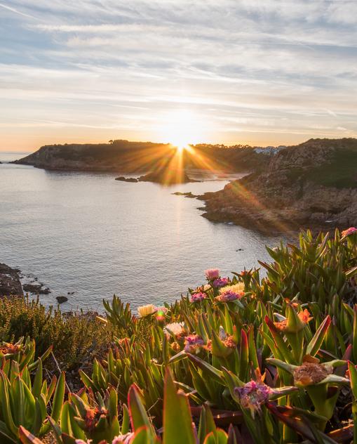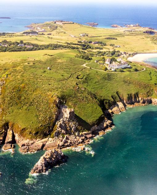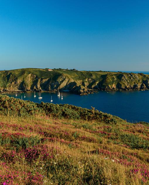 In Kriegszeiten war der Archipel strategischer Brückenkopf – heute noch sind die Spuren deutscher Besatzung während des Zweiten Weltkriegs erkennbar. Fast eine halbe Million Kubikmeter Beton verbauten die Deutschen als Verschanzung – heute ideal als Strandpromenade, Vogelausguck oder Unterkunft. Tunnelsystemen, Bunkern und Wachtürmen steht eine zauberhafte Naturkulisse entgegen: türkisfarbenes Meer, steile Klippen, feinsandige Strände und schier endlose Blütenteppiche – Hortensien, Mimosen, Kamelien, Rosen, oft kaum gebändigt. Hinter Hecken verbergen sich imposante alte Herrenhäuser. Steinerne Cottages sprenkeln verwunschenes Dickicht. Straßen hindurch sind so schmal, dass Radfahrer Vorfahrt haben.