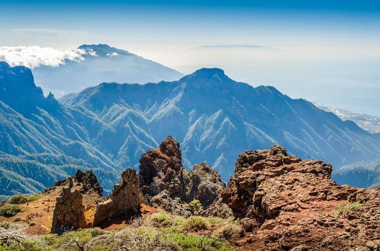 Mit 2426 m ist der Roque de los Muchachos La Palmas höchster Berg, sein Gipfel ist Startpunkt mehrerer Wanderwege. Erste Station ist das architektonisch futuristisch inspirierte Besucherzentrum, das interaktiv, mit Fotos und einem 8-minütigen Film das Sonnensystem erläutert. Einen Kilometer weiter passierst du das Gelände einer der modernsten Sternwarten der Welt mit seltsam anmutenden (Riesen-)Teleskopen. Wer das Observatorium besichtigen will, kann das nur bei einer ca. 70-minütigen Tour. Noch etwas höher liegt der Gipfel des Roque de los Muchachos. In 10 bis 15 Minuten läufst du vorbei an den drei zackigen „Burschen“ (muchachos) zu einer Aussichtskanzel. Von hier hast du bei gutem Wetter einen herrlichen Blick in die Caldera de Taburiente und siehst die Nachbarinseln Teneriffa, La Gomera und El Hierro.