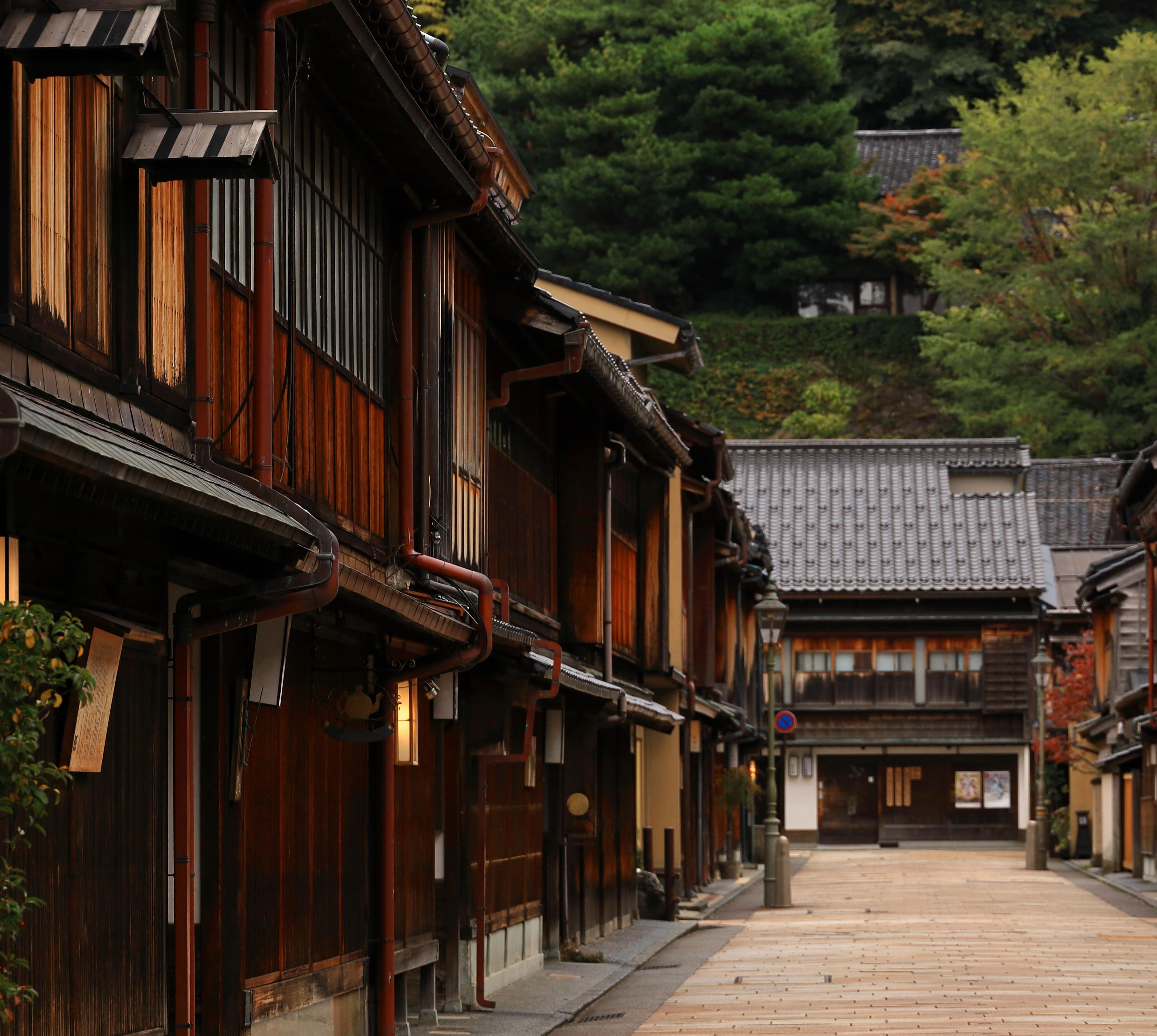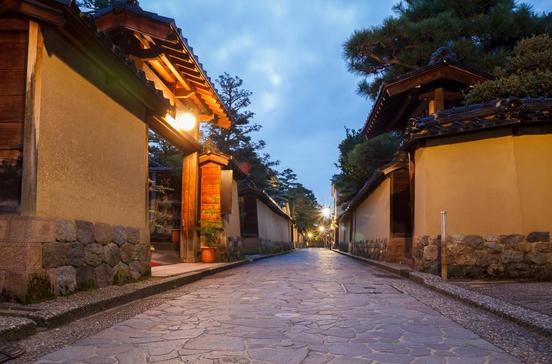 Die Gasse mit Erdwällen, Holzhäusern, Papierfenstern und versteckten Gärten ist eines der am besten erhaltenen Samurai- Viertel der Edo-Periode. Vor allem das Nomura-Haus vermittelt einen guten Einblick in die Lebensart der Kriegerkaste. Zum Terajima-Haus aus dem Jahr 1770 gehört ein friedlicher Miniaturgarten. Im Teezimmer wird für 300 ¥ eine Schale grünen Tees serviert. Sehenswert ist auch das Kaga Yuzen Silk Center, ein früheres Samurai-Haus, in dem heute Kimonoseide gefärbt wird.