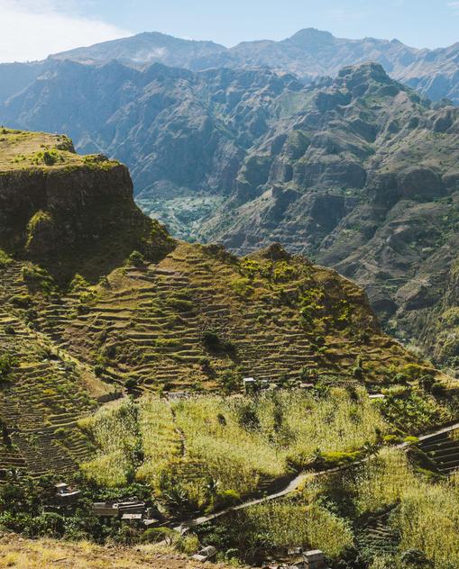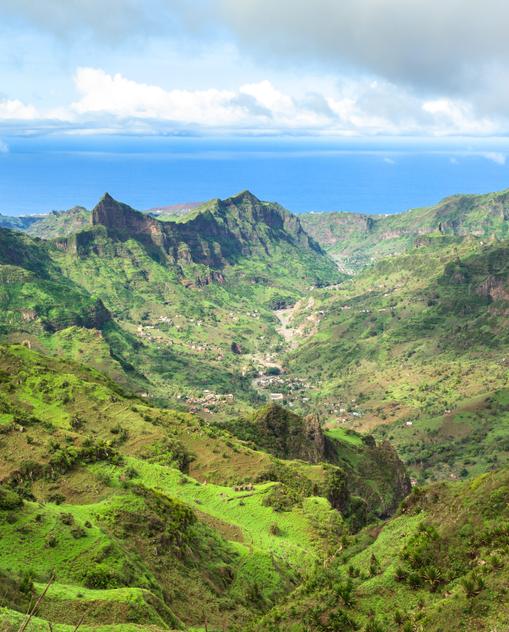 Cabo Verde – das grüne Kap – trägt einen irreführenden Namen. Denn die Inselgruppe im Atlantik, 600 km vor der Westküste Afrikas, ist alles andere als grün. Der 4033 km2 große Archipel aus 15 Inseln liegt in den Ausläufern der Sahelzone und leidet unter extremer Hitze und Trockenheit. Nur auf fünf der neun bewohnten Inseln gibt es, falls der jährliche Regen nicht ausbleibt, genügend Wasser für die Landwirtschaft. Die vier anderen Inseln sind knochentrocken, braune Wüsten, deren vereinzelte Berge die Wolken, die der stete Nordostwind heranträgt, nicht aufhalten können. Man unterscheidet zwischen den Inseln über dem Wind (Barlavento) und denen unter dem Wind (Sotavento). Nach der geografischen Lage unterteilt, sind es drei flache, wüstenhafte Ostinseln und jeweils drei von verschieden hohen Gebirgen geprägte Nord- bzw. Südinseln. Jede Inselgruppe und jede Insel ist anders. Auf den Ostinseln Sal, Boa Vista und Maio findet man herrliche weiße Sandstrände und die besten Voraussetzungen für viele Wassersportarten. Im Norden bilden Santo Antão und São Nicolau mit grandiosen Gebirgspanoramen sowie São Vicente mit der Hafenmetropole Mindelo eine Inselgruppe. Zum südlichen Teil des Archipels zählen die Hauptstadtinsel Santiago, Fogo mit dem fast 3000 m hohen Vulkan Pico do Fogo und das abgeschiedene Brava. Von Oktober bis Juli fegt der Nordostpassat über die Inseln – eine angenehm kühlende Brise in der allgegenwärtigen Hitze. Windsurfer wähnen sich auf den flachen Ostinseln dann im Paradies. Stärker noch profitieren die Gebirgsinseln im Norden vom Passatwind: Ihre Berge halten die Wolken auf, die er über den Atlantik heranträgt. Durch die Feuchtigkeit ist die Nordostseite dieser Inseln grün und fruchtbar.