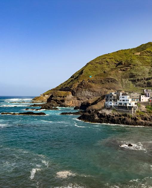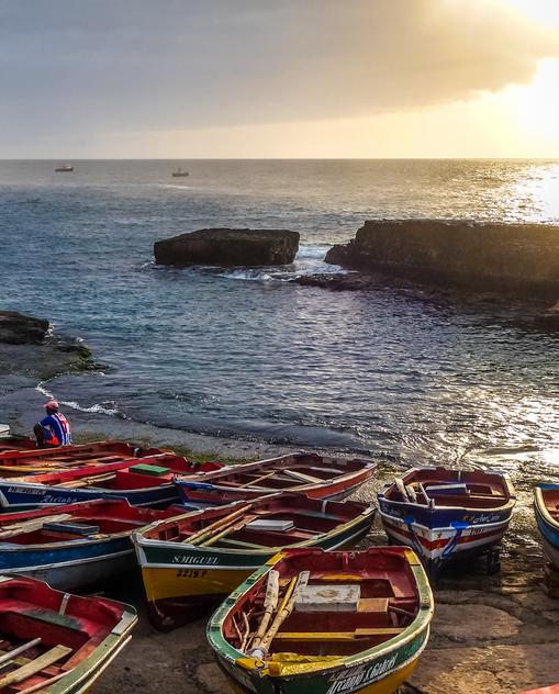 Am weißen Sandstrand liegen bunte Fischerboote, tiefblau schimmert der Ozean, eine frische Brise mildert die stechende Sonne. Der Dorfplatz und die engen Kopfsteinpflastergassen wirken verlassen, nur ein paar Kinder tollen herum. Auf dem Gemüsemarkt, dem Zentrum jedes Orts, herrscht lebhaftes Durcheinander. Lautes Rufen, lachende Gesichter, Berge leuchtender Früchte. Am Straßenrand hocken Frauen vor Schüsseln voll silbrig glänzender Fische, eine Gruppe von Männern sitzt im Schatten eines Baums und spielt Karten. Gemächlich geht es zu – und ganz entspannt; man hat Zeit, man hat Ruhe und Geduld hat man auch. Die ruhige Gelassenheit der Kapverdier ist bewundernswert, umso mehr weil das Leben hier so hart ist, dass zwei Drittel der Bevölkerung im Ausland leben.