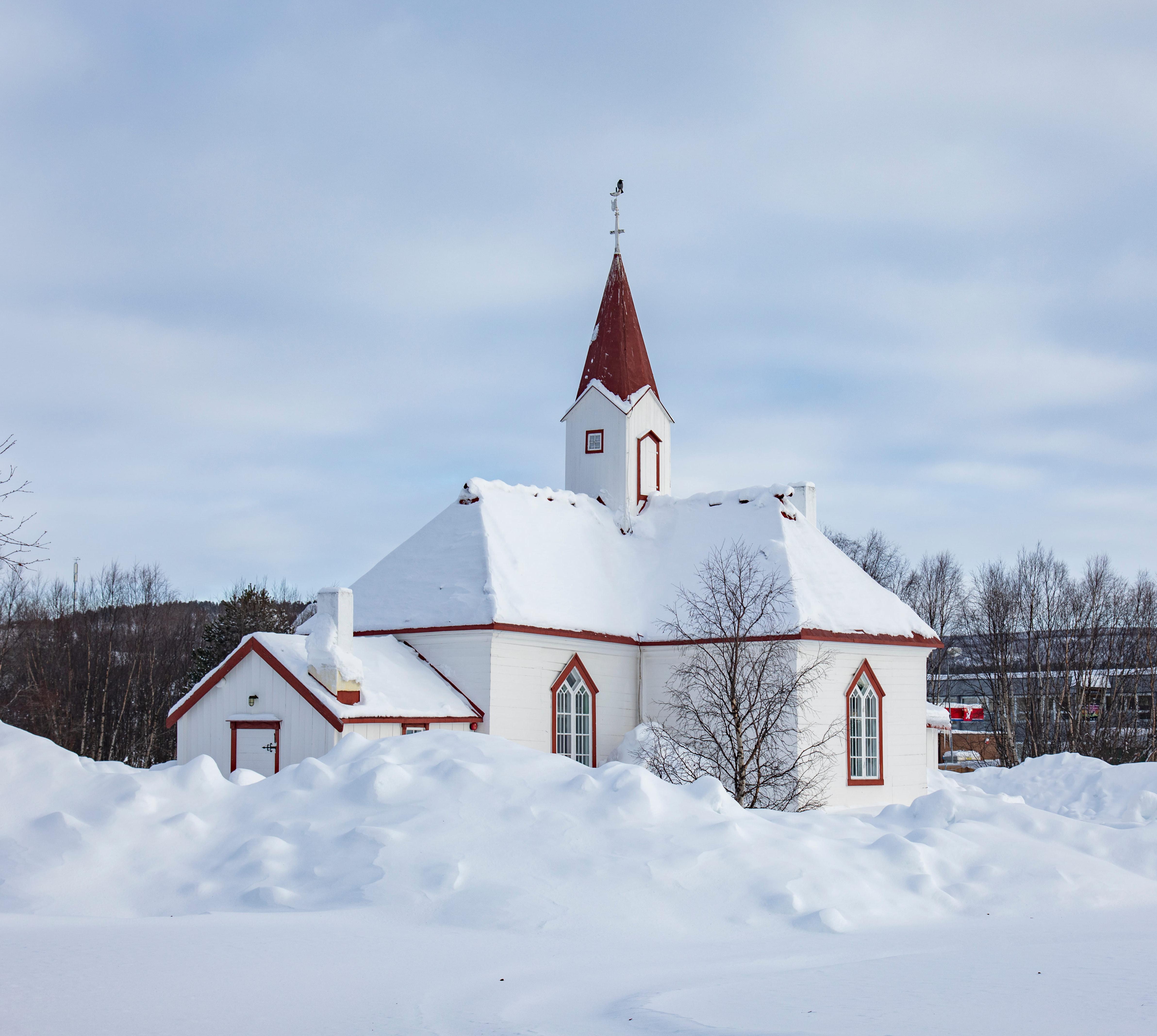 Schon von Weitem zu sehen ist die 1807 erbaute Alte Kirche, die als einziges Gebäude in Karasjok den Zweiten Weltkrieg überstand.