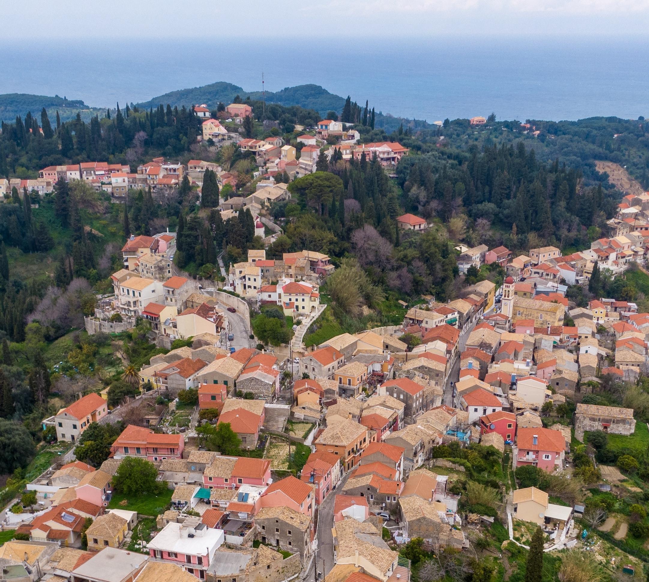 Róda liegt an der Nordküste Korfus und ist mit dem ca. 3 km entfernten Acharávi durch einen gemeinsamen, langen Strand verbunden.