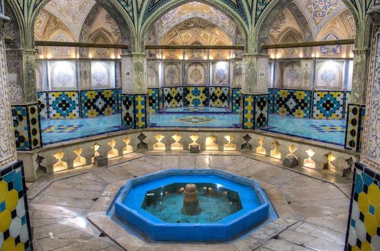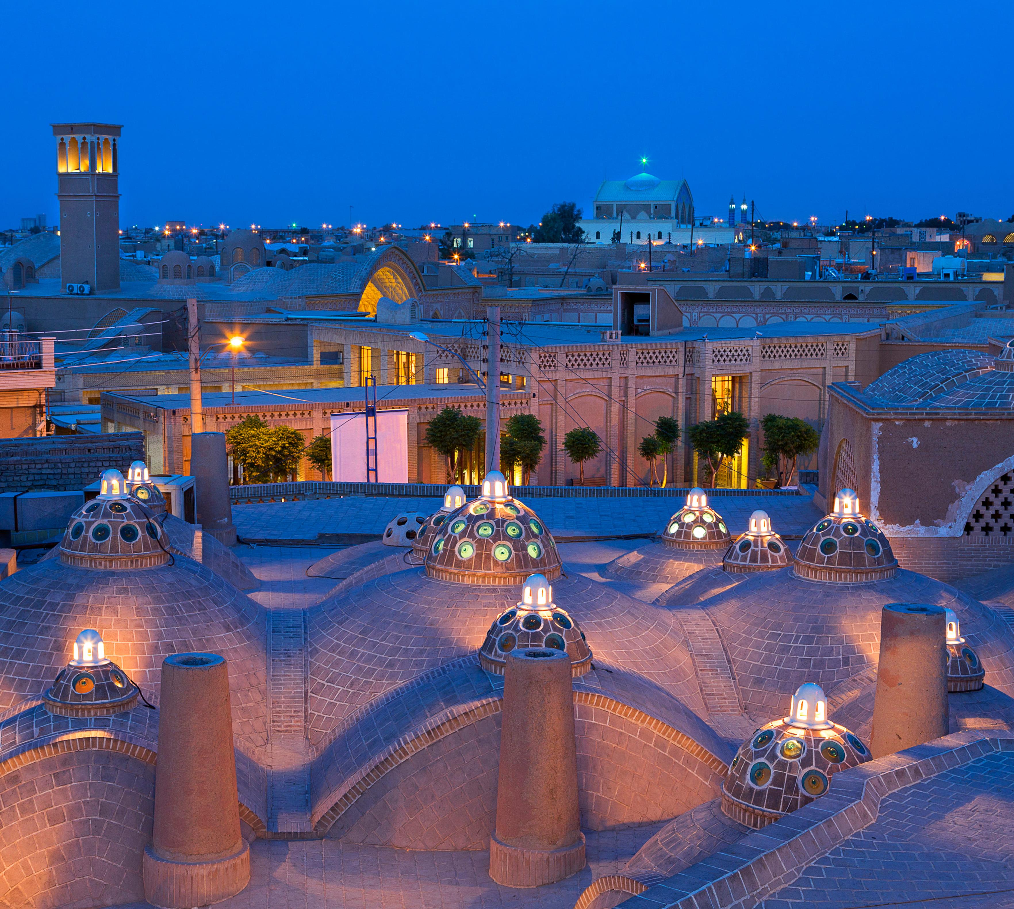 Reich haben Handel und Handwerk diese uralte Stadt an der Seidenstraße aber schon viel früher gemacht. Berühmt für ihre Textilien, Fliesen und das Rosenwasser, hat sie sich auch prächtige Bäder, Moscheen und Koranschulen geleistet. Gar nicht zu reden von ihrem königlichen Garten, dem schönsten des ganzen Iran. Und mit der Dasht-e Kavir, der Großen Wüste, im Norden und dem „Geiergebirge“ (Kuh-e Karkas) im Süden besitzt sie auch den spektakulären Landschaftsrahmen für Tagesausflüge in die Natur.