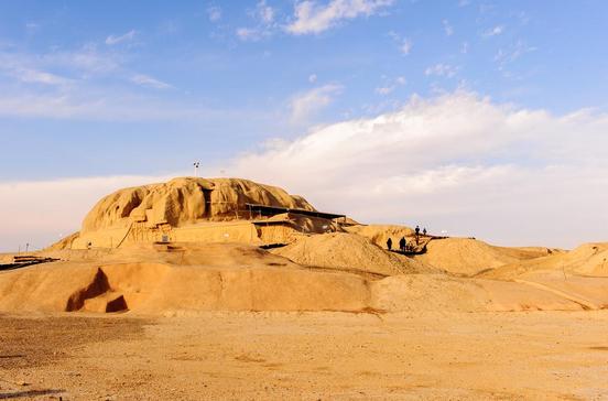 Man sieht ihm sein Alter auf den ersten Blick an, kahl, bucklig und schrundig, wie er ist. Kein Wunder, war dieser Grabungshügel doch schon vor 6000 Jahren besiedelt. Die Schätze, die französische Archäologen hier aus der Erde holten, bemalte Keramik, Glas, beritzte Tontäfelchen und tönerne Menschen- und Tierfiguren, lagern im Louvre und in Teheran. Den fahlbraunen Erdhöcker zu besteigen, lohnt dennoch. Der Ort verbindet mit der Vorzeit und der Rundblick von oben erhebt. Praktisch liegt er obendrein, auf halbem Weg hinaus in den Fin-Garten.