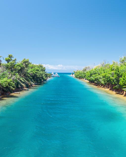 Der Mensch hat aus der Halbinsel Kassándra eine echte Insel gemacht. Schon in der Antike trennte ein Kanal den westlichsten Finger der Chalkidikí vom Festland. Heute ist der Kanal 1250 m lang, 40 m breit und 8 m tief. Bis 1967 konnte man ihn nur mit einer Fähre überqueren. Jetzt überspannen ihn zwei Straßenbrücken.