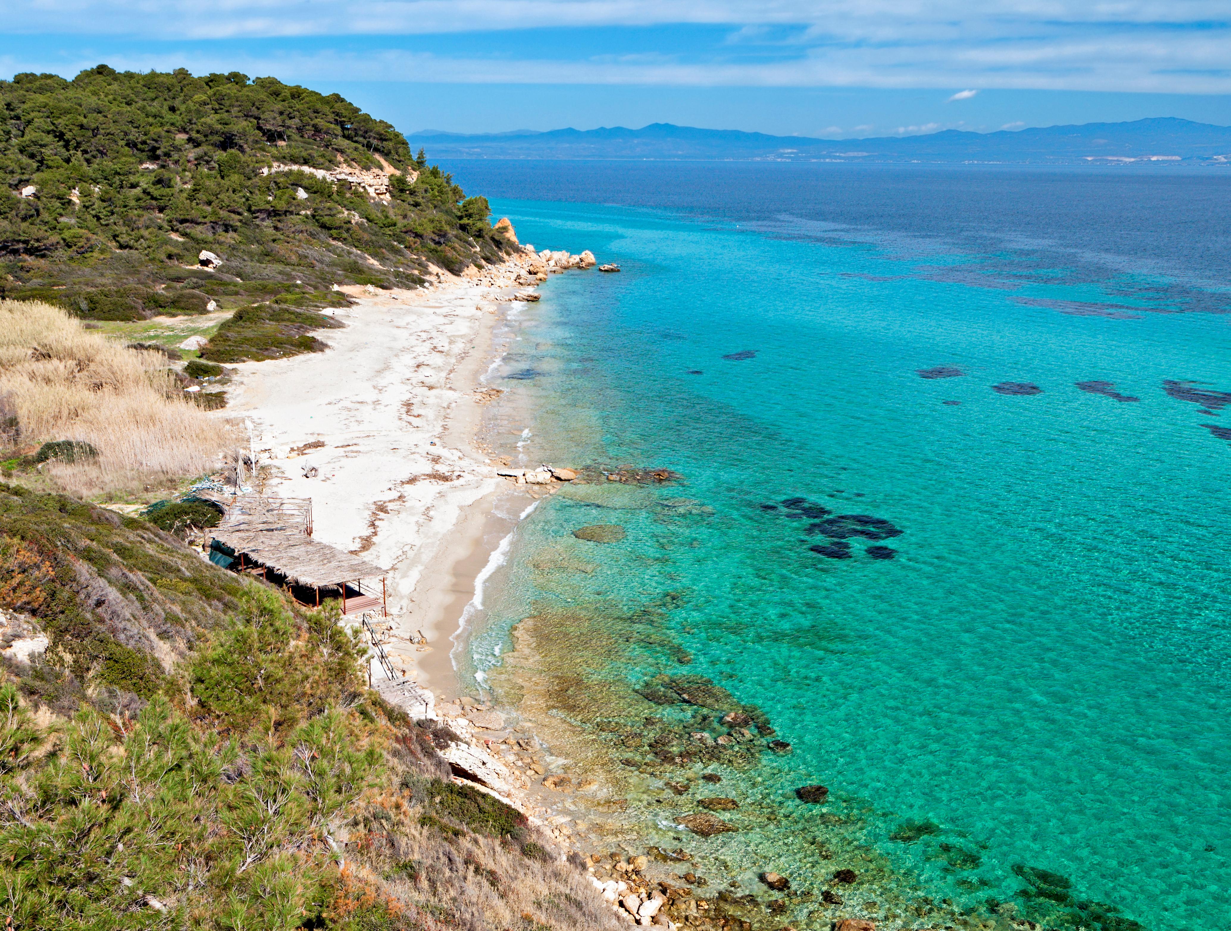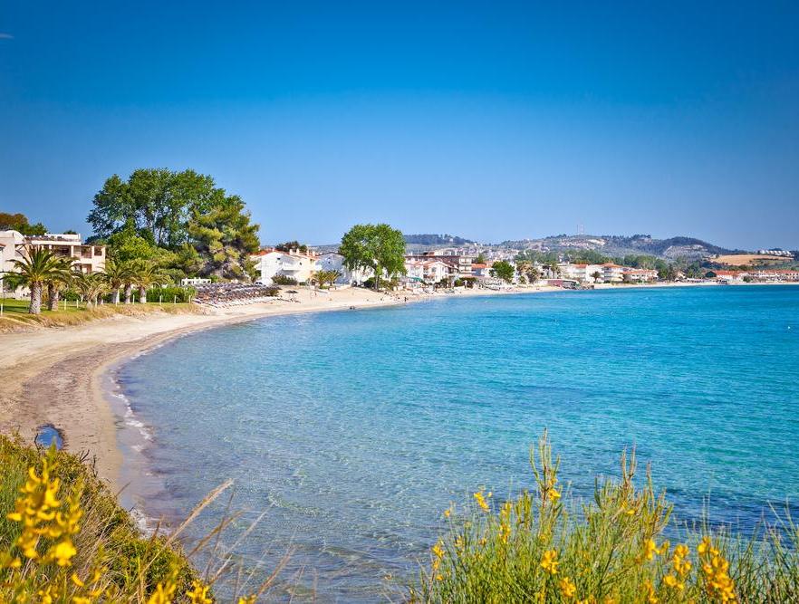 Die Kassándra ist der touristisch am intensivsten erschlossene Finger. Hier stehen die meisten Großhotels, liegen die Urlaubsorte dicht beieinander. Dafür ist das Wassersportangebot groß – und das sommerliche Nightlife intensiv. Typisch für die Kassándra sind kilometerlange Sandstrände und leicht gewellte Ebenen im Binnenland. Berge fehlen, der vorwitzigste Hügel steigt nur auf 353 m Höhe an. Wo kein Weizen wächst, gedeihen Olivenbäume und Kiefern, deren Harz im Sommer gezapft wird. Die Winzer brauchen es zur Herstellung des retsína. Die Fischerhäfen der Chalkidikí sorgen für stets frischen Fisch in den Tavernen.