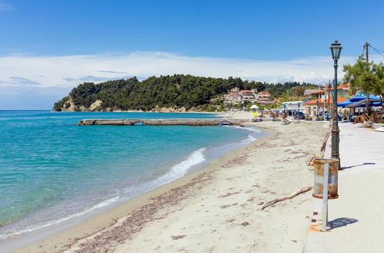 Kassándra ist sozusagen der erste Finger der Chalkidiki. Hier herrscht weniger eine Gebirgslandschaft vor, viel mehr ist die Landzunge geprägt von längen Sandstränden, Olivenbäumen und Getreidefeldern. Daher rührt auch das starke Interesse der Touristen an dem Fleckchen griechischer Erde. Vor allem der Wassersport in allen seinen Formen zieht die Besucher an, denn das Meer ist hier besonders sauber, klar und gut zugänglich.