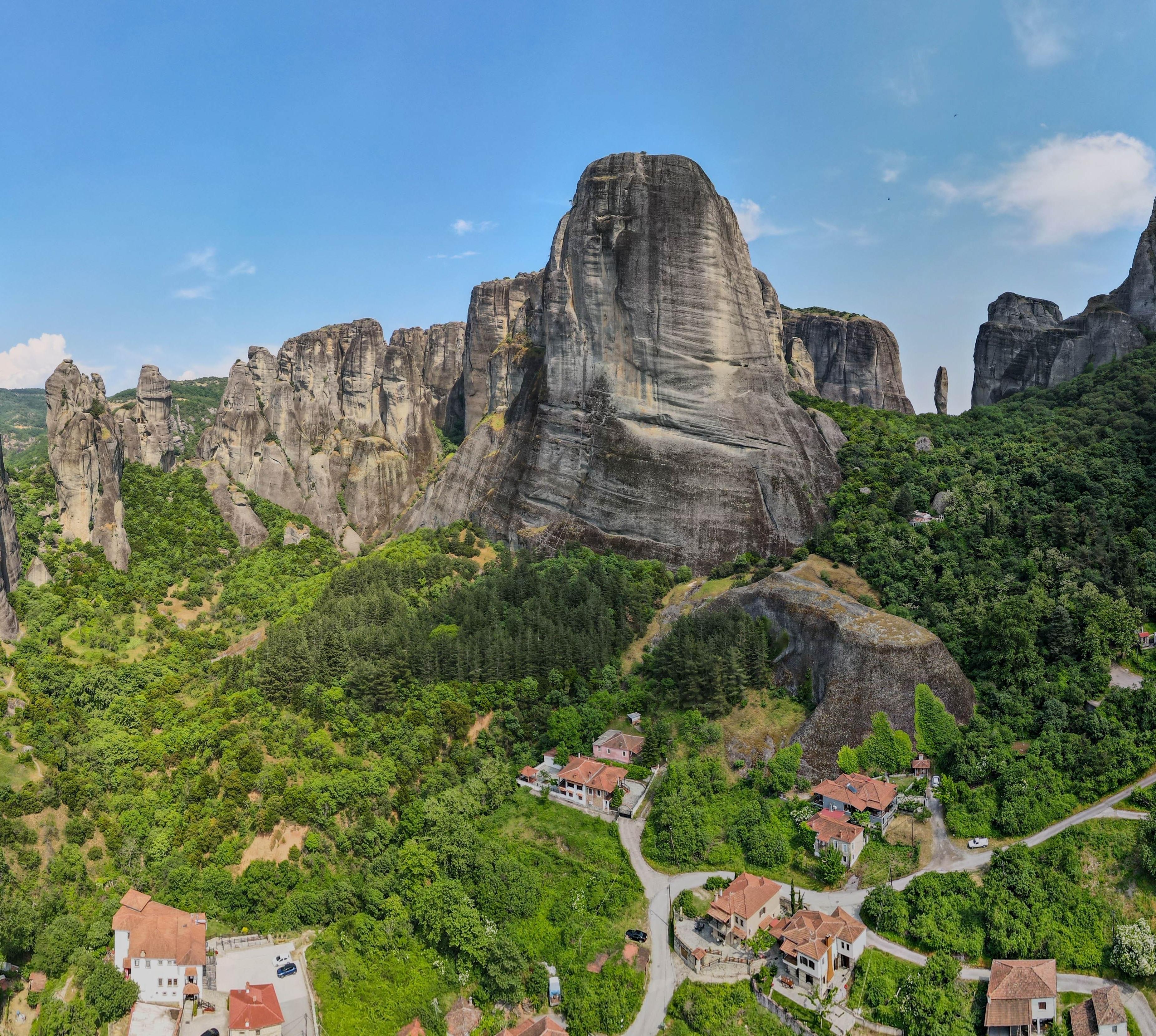 Die Klosterfelsen sind das Bühnenbild für eine nette Provinzstadt ohne sonderlich aufregende Sehenswürdigkeiten. Nur die Kirche Kímesis tis Theotókou (tagsüber geöffnet) aus dem 14.Jh. am oberen südöstlichen Stadtrand birgt einen architektonischen Schatz: Einen seltenen Ambo, wie er einst in frühchristlichen Kirchen die Funktion einer Kanzel übernahm. Das Podest auf dem brückenartigen steinernen Aufbau wird von einem auf vier Säulen ruhenden Baldachin überdacht. Wenn du an der Nordseite der Kirche entlang drei Minuten nach Osten gehst, kommst du in den stillen, dörflich wirkenden Ortsteil Sopótos. Dort beginnt an der Pension Kóka Róka ein Fußweg, über den du in etwa 30 Minuten zum Kloster Agía Triáda und von dort in weiteren 30 Minuten zum Kloster Ágios Stéfanos gelangst.