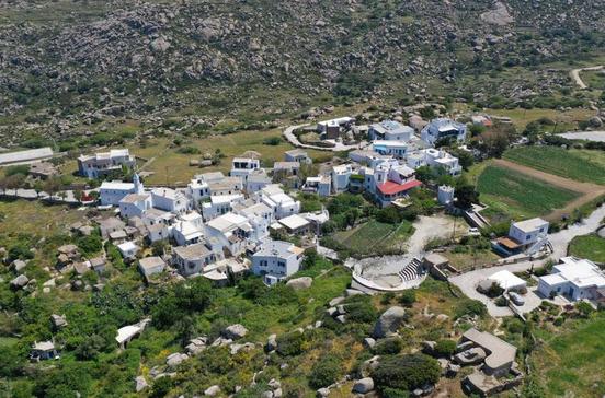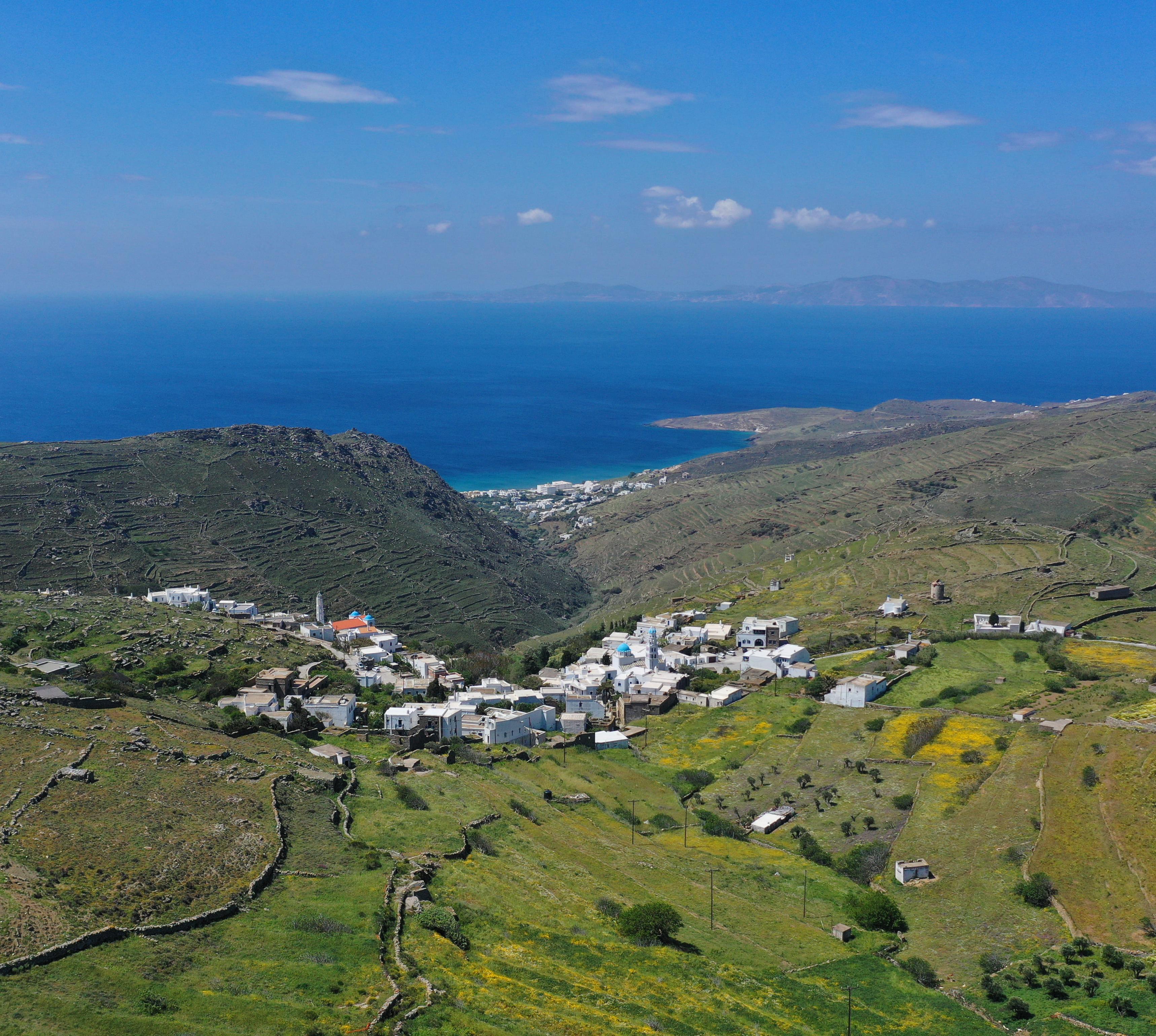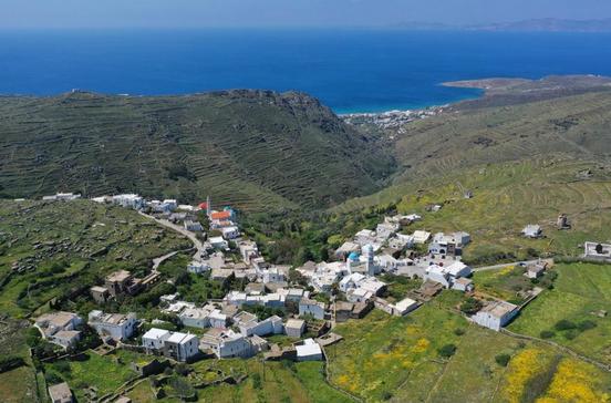 Dieses ursprünglich gebliebene Bergdorf ist Ausgangspunkt für zwei kurze, besonders schöne Wanderungen. Die eine führt in gut 90 Min. teilweise über eine alte venezianische Straße hinab in die Stadt, die andere über Maultierpfade in etwa 45 Min. an den Strand von Kiónia.