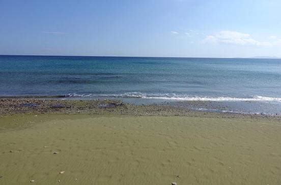 Dieser Sand-Kies-Strand bietet gute Wassersportmöglichkeiten inklusive Windsurfing.