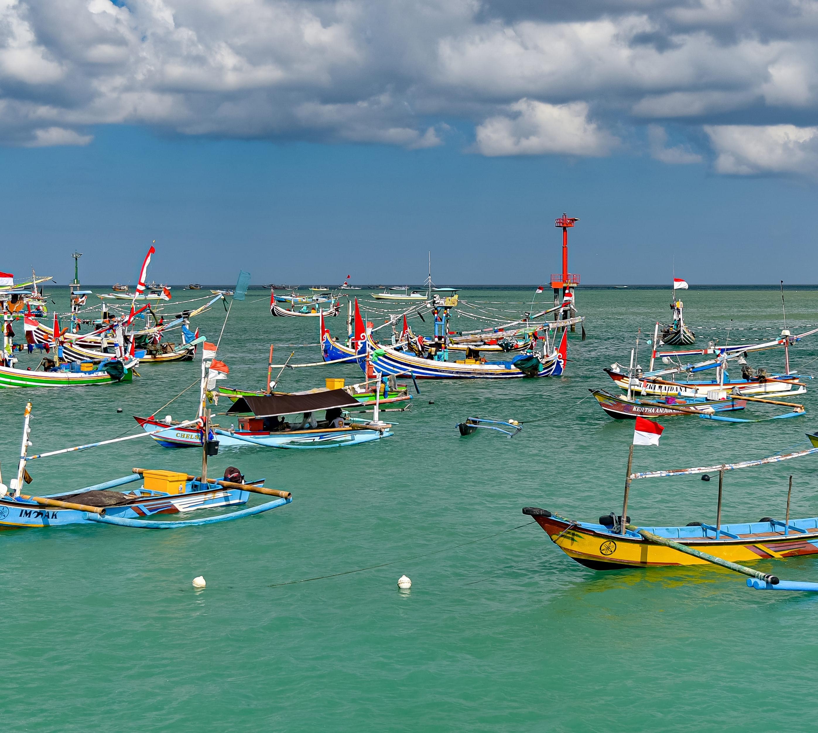 An der schmalen Landbrücke, die Bali mit der Halbinsel Bukit Badung verbindet, liegt südlich vom Flughafen Ngurah Rai der kleine Fischerort Jimbaran mit seinem weißen, sauberen Strand. Jahrelang war der Ort vom Tourismus nicht berührt. Erst in der jüngeren Vergangenheit sind Hotels entstanden, einige mussten nach dem Schock von 2005 wieder schließen. Doch nach wie vor fahren die zahlreichen Fischer mit ihren kleinen Auslegerbooten aufs Meer hinaus und verkaufen morgens ihren stolzen Fang.