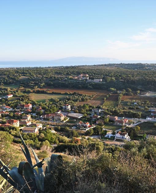 Es riecht nach Oregano auf dem 320 m hohen Bergrücken. Dieses Kraut wächst neben den Ruinen der venezianischen Burganlage zuhauf. Bis 1757 war hier rundherum die Inselhauptstadt Ágios Geórgios angesiedelt. Heute balanciert man auf den etwa 600 m langen Mauern und genießt das Panorama auf die Dörfer vor dem Meer im Süden (Bezirk Livathó).
