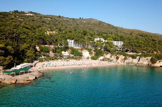 Etwa 700 m langer, nahezu unverbauter und von Grün umrahmter Kiesstrand 5 km nordöstlich von Sámi. Hier wurden viele Szenen des Films „Corellis Mandoline” gedreht.