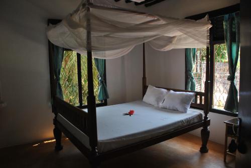 Die mit geschnitzten Holzmöbeln im Stil der Swahili eingerichteten Zimmer erwarten Sie mit einem Sitzbereich, teilweise auch mit einem eigenen Balkon. Im Bad liegen Handtücher für Sie bereit. Zur weiteren Ausstattung gehören Bettwäsche und ein Ventilator.