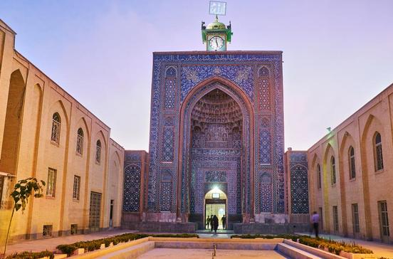 Kermans Antwort auf Isfahans Imam-Platz. Zugegeben eine Schmalspurversion, aber städteplanerisch ebenfalls aus einem Guss: auch 400 Jahre alt, autofrei, mit Arkaden gesäumt und mit architektonischen Hochkarätern bestückt. Highlights sind das Hammam, heute ein elegant renoviertes Museum für Badekultur, und an der Ostseite die Ganj-Ali-Khan-Moschee mit einer innen fast konkurrenzlos feinen Kuppel. In der Karawanserei nebenan haben diverse Kunsthandwerker ihre Läden und Ateliers.