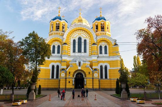 Die Lieblingskirche der Kiewer, erbaut 1862–82, ist Sitz des ukrainisch-orthodoxen Patriarchen. Die herrlichen Mosaiken und Wandmalereien stammen von Viktor M. Wasnetsow („Die Taufe der Rus“), Michail W. Nesterow und Wrubel. Gläubige beten am Sarkophag der heiligen Barbara, der Schutzheiligen der Bergleute. Samstags um 17, sonntags um 10 Uhr wunderschöne Chorgesänge.