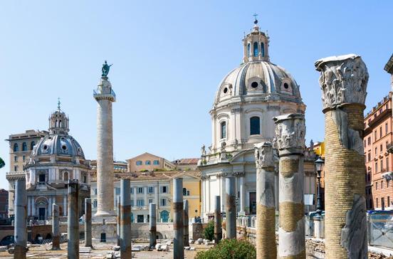 Die 38 m hohe Trajanssäule (113 n.Chr.), Schmuckstück des spätesten und prächtigsten Kaiserforums, erstrahlt nach fast zehnjähriger Restaurierung wieder perlweiß. Bewundere den 200 m langen Bilderfries vom Krieg Kaiser Trajans gegen die Daker.