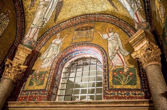 Nahe der großen Kirche Santa Maria Maggiore liegt die kleine Basilika Santa Prassede mit herausragenden byzantinischen Mosaiken aus dem 9.Jh. am Triumphbogen und in der Apsis. Pressede wurde der Legende nach von Petrus zum Christentum bekehrt.