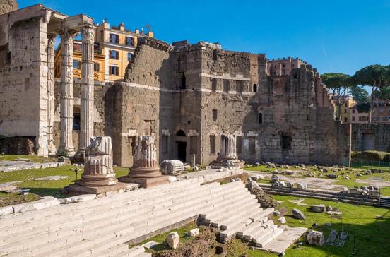 Das Augustusforum wird vom Tempel des rächenden römischen Kriegsgotts Mars beherrscht und soll an die Schlacht von Philippi (42 v.Chr.) erinnern, in der Antonius und Octavian (der spätere Kaiser Augustus) die Mörder Caesars endgültig vernichteten. Friedenskaiser Augustus (27 v.Chr.-14 n.Chr.) ließ über 80 Tempel bauen oder verschönern. Es heißt, er habe ein Rom aus Ziegelsteinen vorgefunden und eines aus Marmor hinterlassen. Einen guten Blick hat man von der Via dei Fori Imperiali.