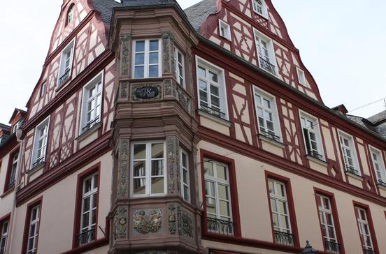 Zu dem romantischen Architekturensemble an der Florinskirche gehören ein gotisches Schöffenhaus und das Kauf- und Danzhaus von 1419, das seit dem Umbau im 17./18.Jh. auch barocke Stilelemente zieren. Hier wurde einst gehandelt und getanzt. Unter der Turmuhr von 1724 zieht der „Augenroller“ seine Fratzen: Im Takt des Pendels verdreht der Kopf die Augen und streckt die Zunge heraus - angeblich ist er ein Abbild des Raubritters Johann Lutter von Kobern auf dem Weg zum Schafott. Die Mauern bergen heute die Schätze des Mittelrheinmuseums, zu denen vor allem bedeutende Gemälde der Rheinromantik gehören.