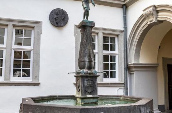 Umringt von Renaissance- und Barockbauten des Jesuitenensembles ist das Wahrzeichen der Stadt Koblenz: der Schängelbrunnen. Im Jahr 1940 wurde er vom Bildhauer Carl Burger entworfen. Er widmete den Brunnen dem Mundartdichter Josef Cornelius, der den Text zu der Koblenzer Hymne - dem Schängellied - geschrieben hat.