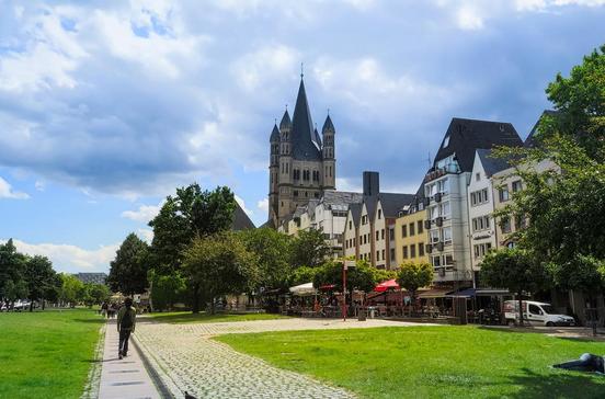 Gäbe es nicht den übermächtigen Dom, würde dieses Bauwerk alle Augen auf sich ziehen: Die 1172 geweihte Kirche gilt als formvollendeter Ausdruck romanischer Baukunst. Weithin sichtbar ist der 75m hohe Vierungsturm, der von vier kleinen Rundtürmen abgeschlossen wird. Groß St. Martin wurde im Zweiten Weltkrieg weitgehend zerstört und unter Federführung des namhaften Kölner Architekten Joachim Schürmann wieder aufgebaut.