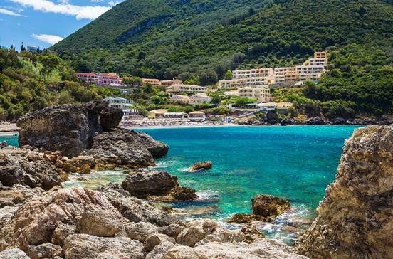 Auch heute noch würde sich Homers Odysseus wohl verwundert die Augen reiben, wenn er noch einmal, wie in sagenhaften Zeiten, nach seiner 10-jährigen Irrfahrt am Strand von Érmones aus dem Tiefschlaf erwachen würde. Vielleicht stünde ja auch eine Badende vor ihm, so schön wie damals Nausikaa, die Tochter des Phäakenkönigs Alkinoos. Die Landschaft aber könnte er nicht wiedererkennen: Das Hinterland des nur 200 m langen Sand-Kies-Strands füllen jetzt zahlreiche Pensionen und Hotels. Sicher wäre Odysseus auch verwundert über die Standseilbahn, die die Gäste eines Hotels von ihren hoch am Hang gelegenen Zimmertrakten an den Strand hinunterbringt.